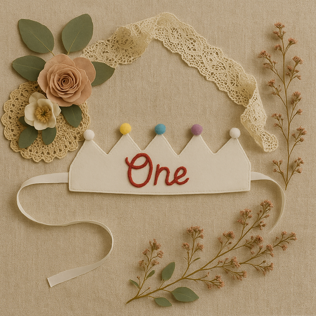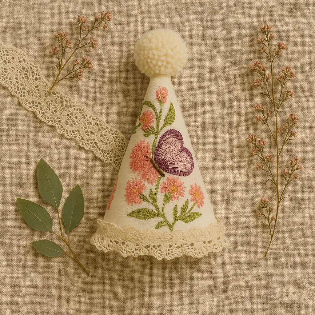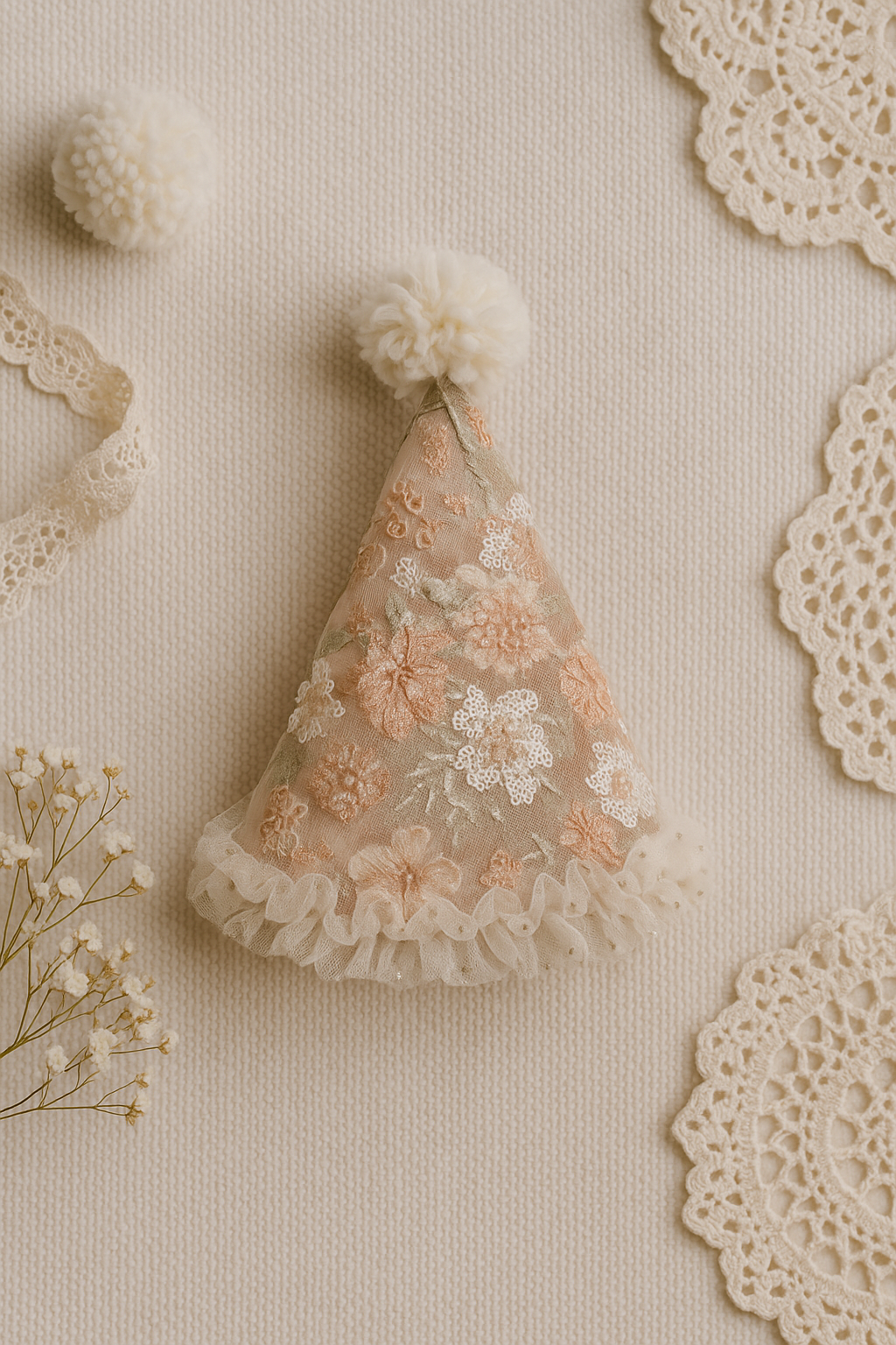 Our festive, hand-crafted party hats are designed with soft fabrics, sweet stitching, and heirloom-quality embellishments to bring just the right amount of whimsy to your family’s milestone moments.